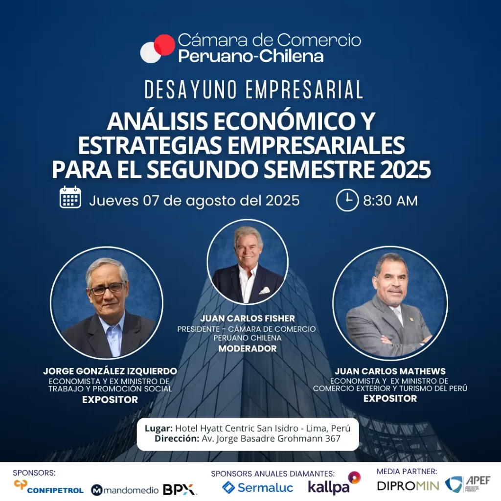 La Cámara de Comercio Peruano-Chilena te invita al Desayuno Empresarial: «Análisis Económico y Estrategias Empresariales para el Segundo Semestre 2025»