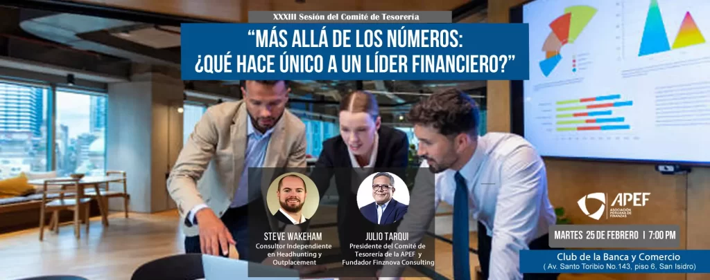 «Más allá de los números: ¿Qué hace único a un líder financiero?»XXXIII Sesión del Comité de Tesorería Tema: «Más allá de los números: ¿Qué hace único a un líder financiero?» Expositor: Steve Wakeham, Consultor Independiente en Headhunting y Outplacement Presidente: Julio tarqui. Presidente del Comité de Tesorería de la Asociación Peruana de Finanzas y Fundador Finznova Consulting Modalidad: Presencial Lugar: Club de la Banca y Comercio, ( Av. […]