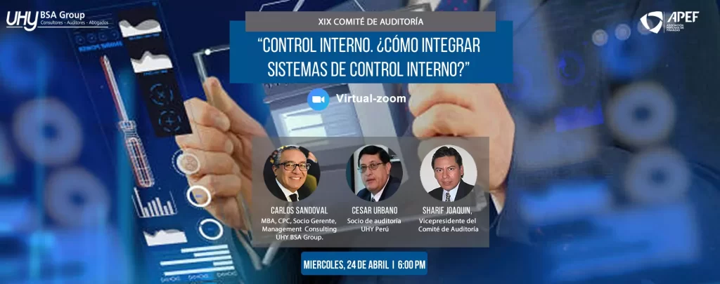 «Control Interno. ¿Cómo integrar sistemas de control interno?» XIX COMITÉ DE AUDITORÍAExpositor: Carlos Sandoval, MBA, CPC, Socio Gerente, Management Consulting UHY BSA Group. Cesar urbano ventoncilla, Socio de auditoría UHY Perú Sharif Joaquin, Vicepresidente del Comité de Auditoría. Día: miércoles 24 de abril de 2024Hora: 6PMModalidad: Conversatorio via plataforma zoom APEFObjetivos: Clarificar la Importancia del Control Interno: […]