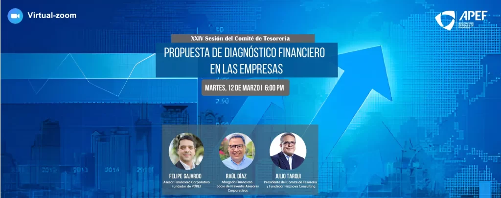 Propuesta de Diagnóstico Financiero en las Empresas Expositor: Felipe Gajardo – Asesor Financiero Corporativo – Fundador de Póket Raúl Díaz – Abogado Financiero – Socio de Preventis Asesores Corporativos Julio Tarqui – Presidente del Comité de Tesoreria y Fundador Finznova Consulting Día: Martes, 12 de marzo Hora: 6PM Modalidad: Conversatorio vía plataforma zoom APEF Objetivo: […]