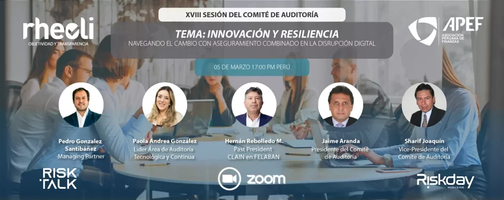 XVIII SESIÓN DEL COMITÉ DE AUDITORÍA «Innovación y Resiliencia: navegando el cambio con aseguramiento combinado en la disrupción digital» Día: Martes, 5 de marzo de 2024 Hora: 5:00 PMFormato: Vía Plataforma Zoom APEFObjetivos: Desarrollar nuevas competencias y habilidades que nos permitan brindar mayor valor agregado a nuestras OrganizacionesExpositores: Pedro Gonzalez Santibáñez, Managing Director Paola Andrea González, […]