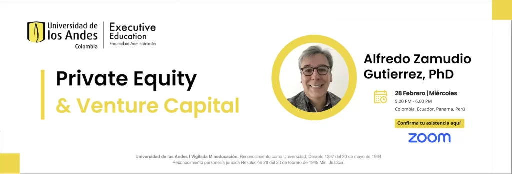 Webinar: «Private Equity & Venture Capital» miércoles 28 de febrero de 2024, de 5:00PM a 6:00PM (Hora PERÚ), con la participación del señor Alfredo Zamudio Gutierrez, PhD. Universidad de Los Andes, Colombia. Este evento va dirigido a Analistas, jefes, gerentes y directores de finanzas y demás áreas funcionales de la empresa. Contenido a tratar: Venture Capital– El Venture Capital- Business Angel- […]