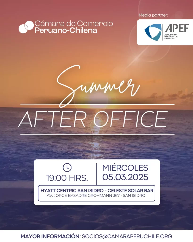 🔵🔴 La Cámara de Comercio Peruano-Chilena tiene el placer de invitarte a participar de nuestro primer Summer After Office.