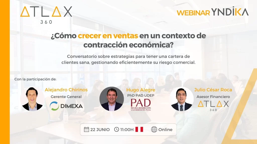 Webinar – ¿Cómo crecer en ventas en un contexto de contracción económica? Día: jueves, 22 de junio de 2023Hora: 11:00 – 12:30 (hora de Perú) Atlax 360 Perú le invita a este webinar que trataremos: Conversatorio sobre estrategias para tener una cartera de clientes sana, gestionando eficientemente su riesgo comercial. Te invitamos a participar del […]