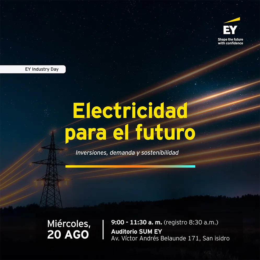 EY Industry Day Energy: Un espacio donde el equipo encargado del sector eléctrico en EY analizará el rol del sector en el desarrollo sostenible del Perú. Exploraremos oportunidades de inversión, acceso al financiamiento y los desafíos y oportunidades de la política fiscal en el sector.