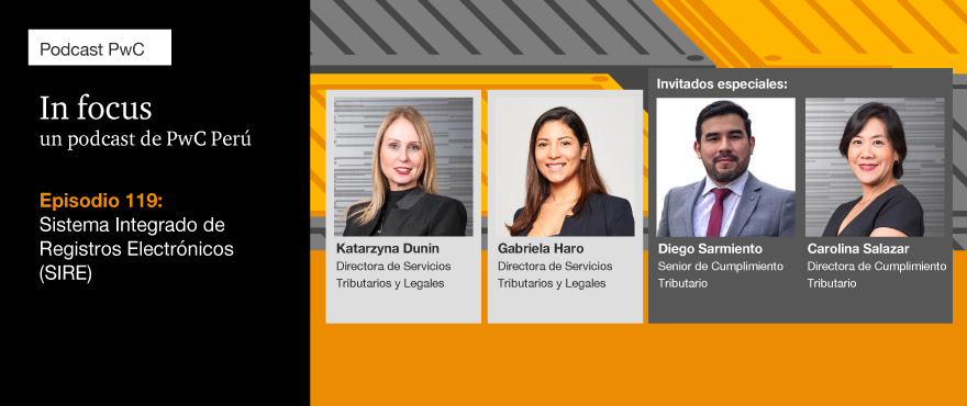 Katarzyna Dunin y Gabriela Haro, Directoras de Tax & Legal de PwC Perú, conversan con Carolina Salazar y Diego Sarmiento, Directora y Senior del área de Cumplimiento Tributario de PwC Perú, sobre el “Sistema Integrado de registros Electrónicos – SIRE”, sus principales diferencias con el PLE (Programa de Libros Electrónicos) y algunas consideraciones que deben tomarse en cuenta al respecto.