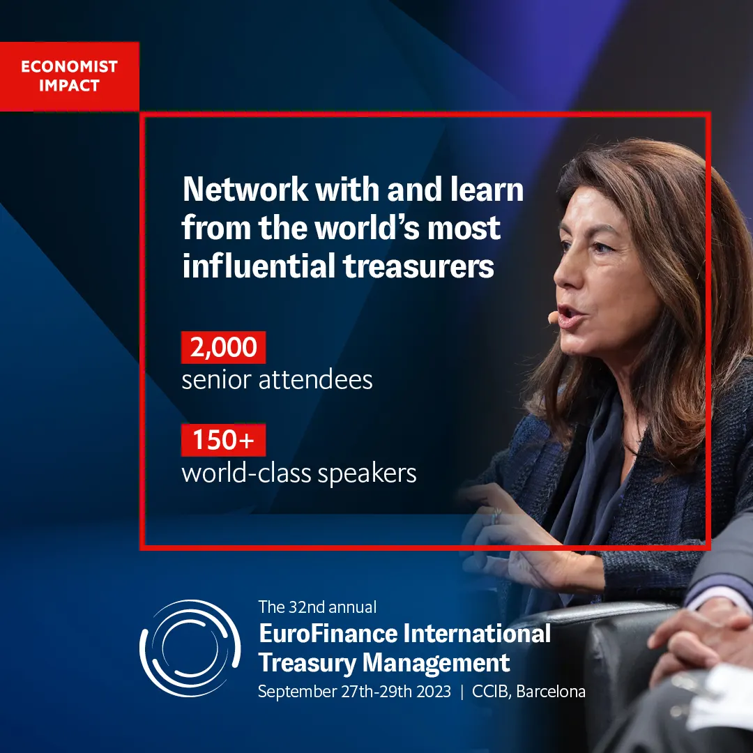 Register now and secure your ticket to learn from 150 of the world’s most senior and innovative treasurers at the 32nd annual EuroFinance International Treasury Management from Sept 27th-29th in Barcelona.