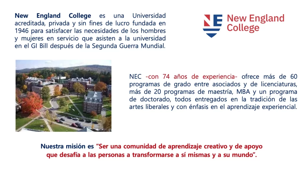 Por encargo de nuestro socio, el señor Alfredo Zamudio, CEO de Tudor & Grey Capital Investment Banking, están cordialmente invitados para participar y conocer el New England College, universidad americana privada que lanza programas en Español para profesionales y ciudadanos de LATAM y España.