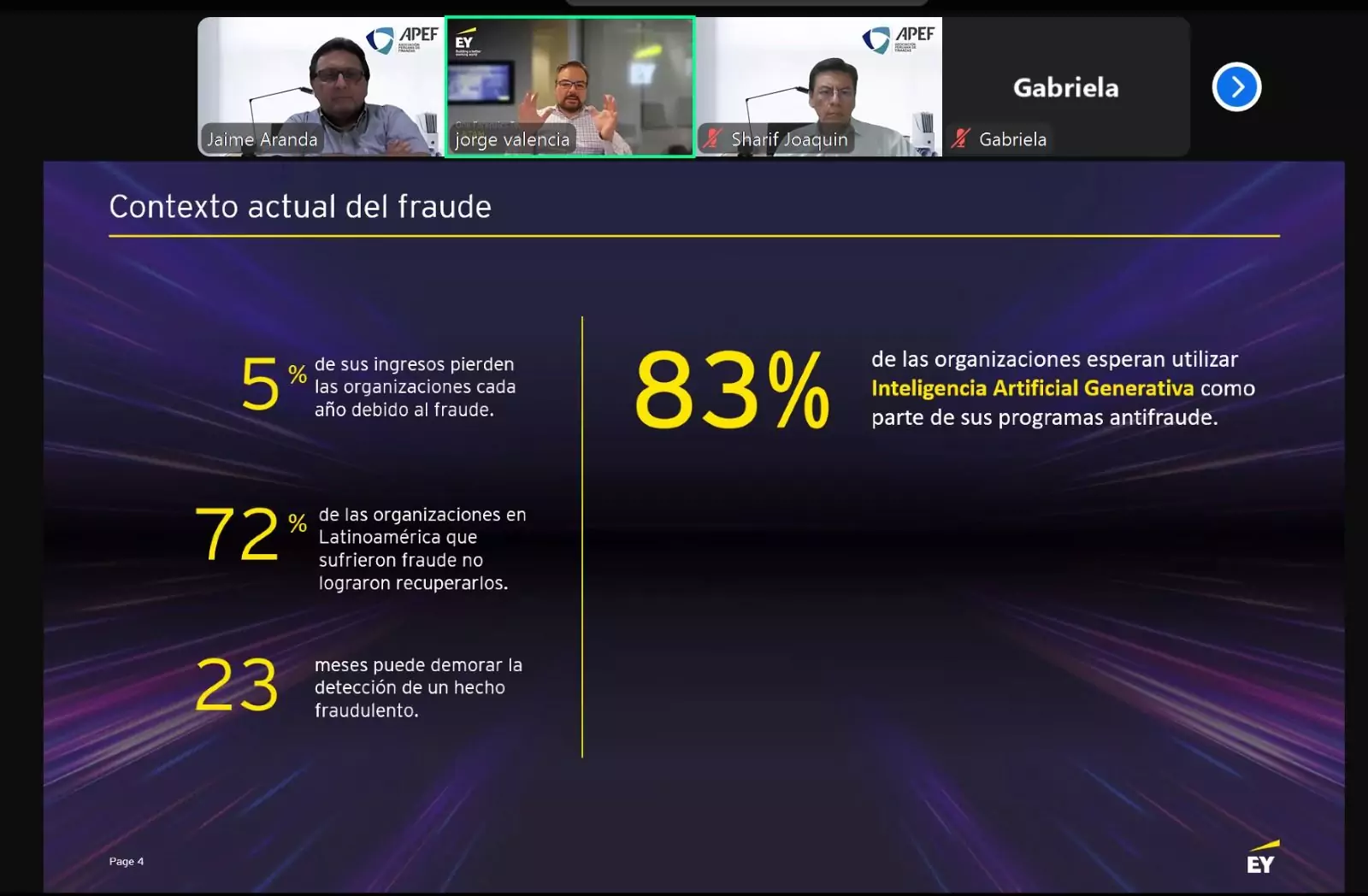 Expositor: Jorge Valencia Pérez, CFE, EnCE, Socio de EY Perú en la práctica de gestión de riesgos de integridad corporativa y servicios de investigación forense.